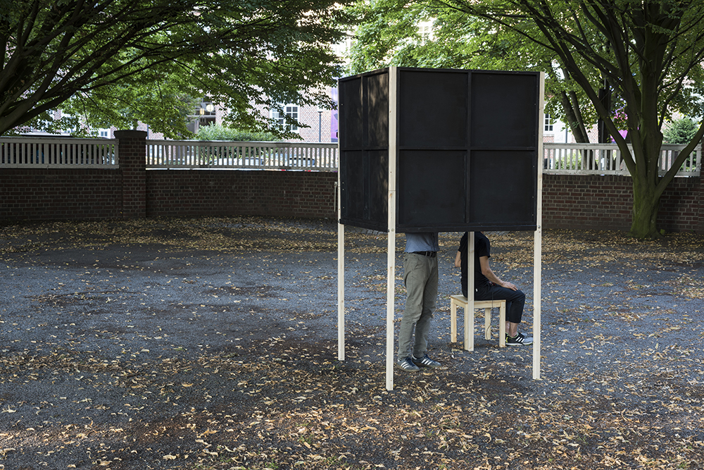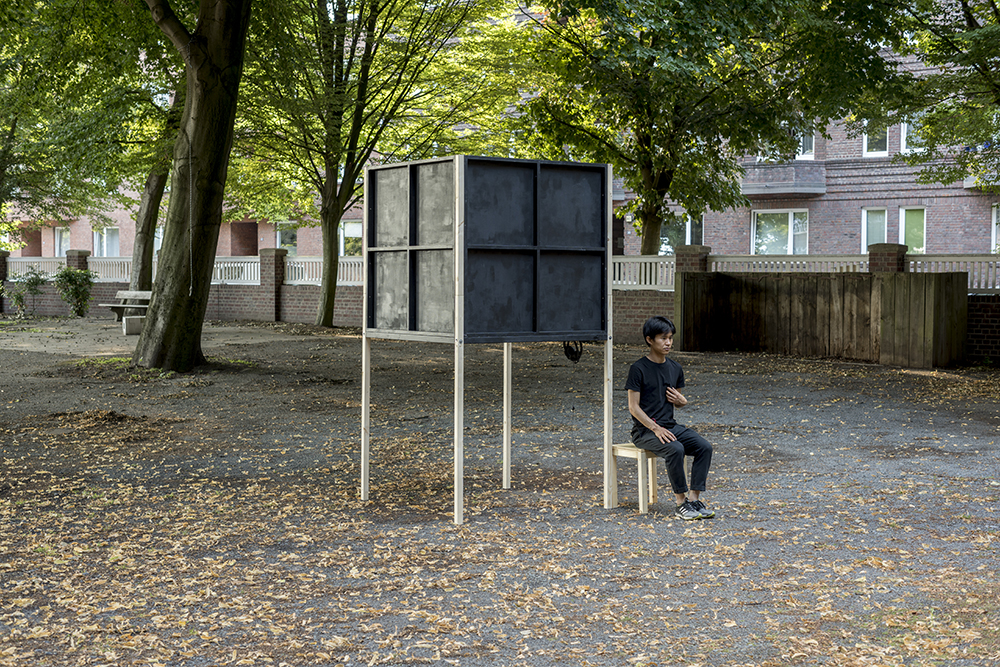 wood, canvas, acrylic color, heartbeat, mixed media, installation